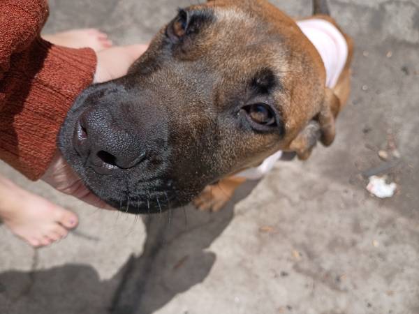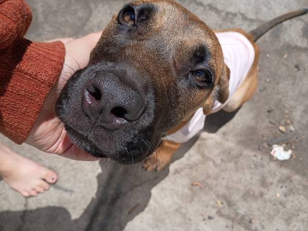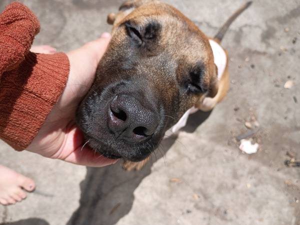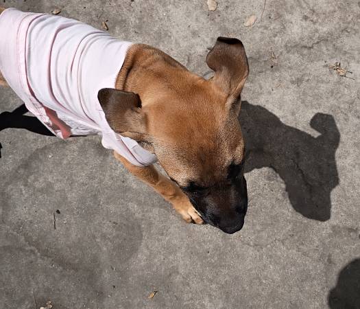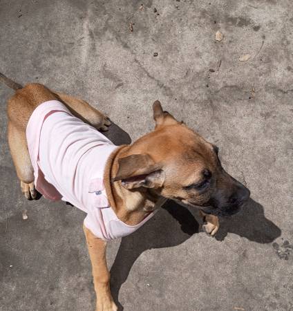 Hi! My name is Athena 😁. My mom and dad rescued me from the side of a busy road about a month ago and am now looking for my forever home! I have my first two sets of shots and am microchipped. I loveeeee kids as I have been around my mom's and dads 17 month old daughter. I also loveeee other dogs as mom and dad have a senior dog as well. I have never been around cats but my mom and dad think based on my temperament that I would do really well. I am unfortunately not potty trained as I take after my older sister who due to age has bladder problems but in my new home I could learn very quickly. I know how to sit and lay down and I loveeee to do happy circles all the time and cuddleeee. I do have to eat out of a slow feeder which will come with me due to me eating to fast and throwing my food up. I am on the skinner side as my mom and dad have slowly been helping me gain my weight back so a high protein diet is a must! If you think I'd be a great fit for your family pleaseeee text my mom!😁 (Mom and dad are willing to meet half way for my forever home)