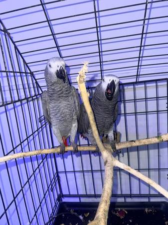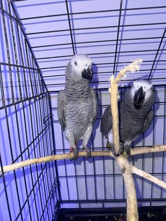 Amazing pair of greys with cage, they are well trained and well looked after. They are for sale with the cage so the price includes the 2 parrots and a cage.