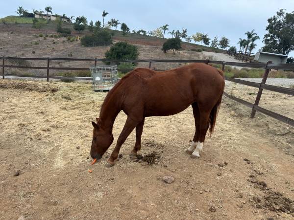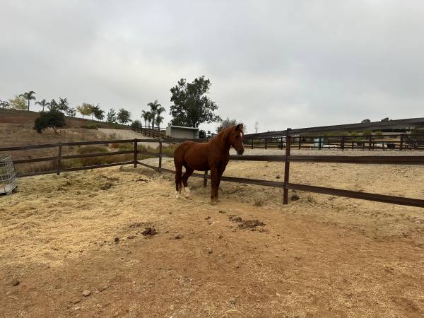 Sweet and beautiful registered Dutch Warmblood mare. Rehoming as a companion horse as she has never been ridden. She is registered and is currently 19 years old. She has been bred a few times. She stands for farrier, she is not on any supplement. She is easy to maintain, free fed on Bermuda hay and has always lived in a pasture. She is not a candidate to be stalled. Please leave your phone number and details on your accommodations.