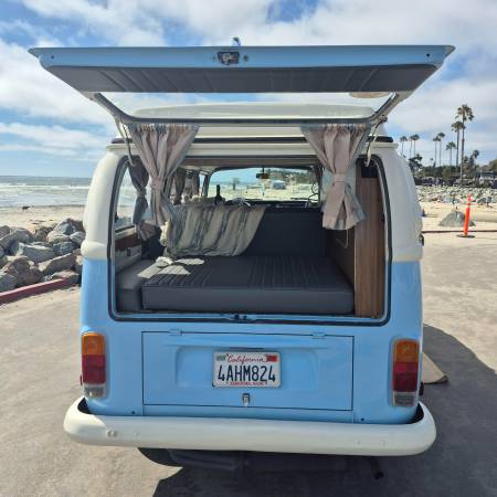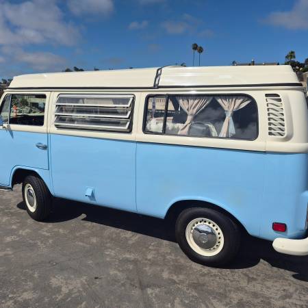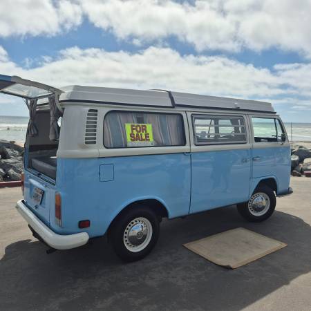 Less than 1000 miles after being restored. New paint, new upholstery, sound proofed, undercoated, engine rebuilt (2 liter Porsche) (rebuilt by local professional engine company), all new window/door seals, brakes done, new linkage, new CV joints, new suspension, aligned, new tires, new battery, new pop top canvas, has hitch installed on front to use a bike rack. Back seat turns into a bed and there is a cot in the pop top. Have all receipts. Has been parked in my garage always and is well taken care of.