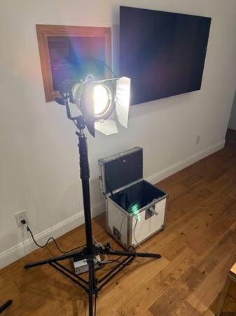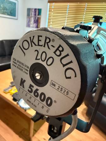 Excellent Joker 200 kit. Includes the head, ballast, barn doors, 4 lenses, head extension cable, scrims, extra bulb and case. Ballast can run light off Gold mount batteries. Really nice shape.
