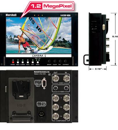 The V-R70P-HDA features our completely Digital TFT-MegaPixel high resolution LCD screen with 1.2 million pixels, V-Mount battery adapter, 4-pin XLR power jack, and optical-grade polycarbonate screen protection.