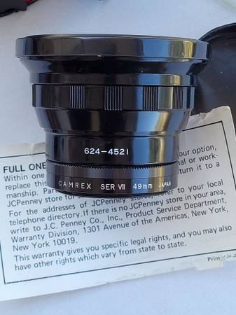 ProSpec Fish-eye Conversion Lens 49mm removable adapter for 35mm camera. Had a lot of fun with this, but don’t need any longer. In excellent condition, always had lens filter on it ( not included ). Comes with case and cap.