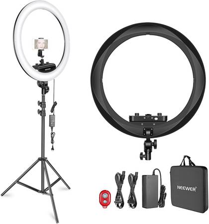 Here is a Neewer Brand Ring Professional Level Light Kit [3/4" Ultra Slim] 48cm (about 19") in diameter Ring Light, 3200-5600K, Dimmable Ring Light with Stand, Smartphone Holder, Hot Shoe Mount for Photo Studio Video (Black). Payment must be in cash only and the asking price is firm. Call David (no texts, please) for more information or to set up a time to see this item in Escondido. This item is offered for local pick-up only, no shipping, and no offers for trades, please. Thanks! 2025-08-30-OF(9)