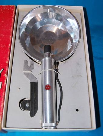 Here is a Vintage Bolsey #1 Flashgun Flash Unit in Original Box. It in good looking condition, except for some cracking in the insulation on the wire leads, so they may need attention. It has not been tested. It is offered as a vintage photographic collectible. People use this Handle to make DIY Star Wars Yoda Lightsaber Light Sabre. This one would be perfect for any Star Wars fan looking to create their own Yoda lightsaber. Payment must be in cash only and the asking price is firm. Call David (no texts, please) for more information or to set up a time to see this item in Escondido. This item is offered for local pick-up only, no shipping, and no offers for trades, please. Thanks! 2020-12-16-GRFC18A