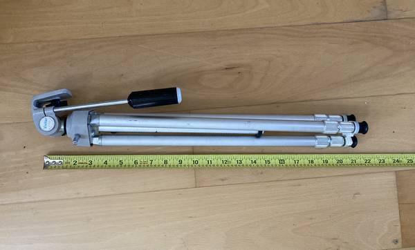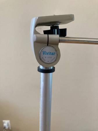 Great deal on a vintage (circa late 1970's) tripod in great condition. Vivitar model #1102 - Made in Japan! All adjustments work. Rises to a max of 54 1/2". Folds to 21". Lightweight.