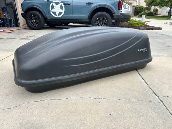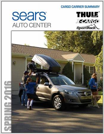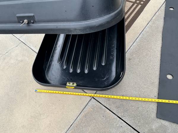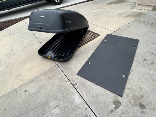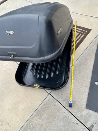 Sears 20 cubic foot capacity car carrier. Highly rated, aerodynamic, will hold 110-150lb, original price $250. Very good condition, everything works well, includes original key, and protective under pad. Approx. 66" L x 33" W x 22" H. New mounting kits available from Amazon for $16. Prefer phone calls over text to avoid scams. Selling for $100 OBO