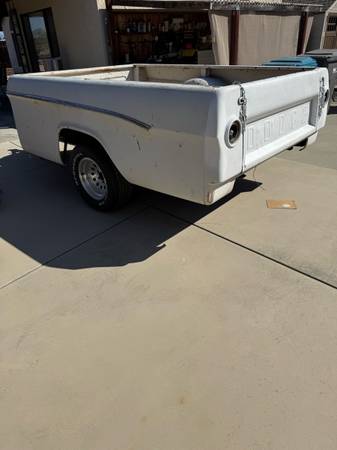 Early 60's Dodge D100 long bed Sweptline utility trailer. Really nice tailgate, up graded rear shocks, nice wheels, great tires.... needs wiring for taillights. No paperwork or VIN. Pickup in...