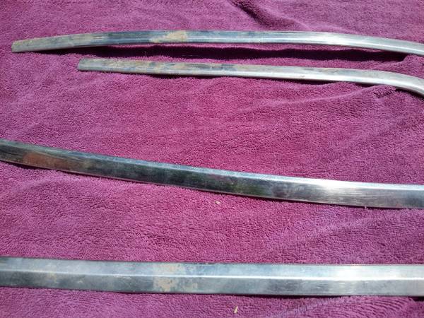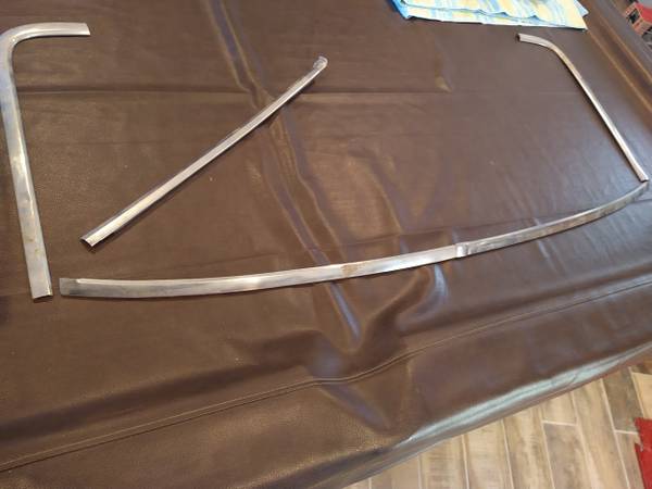 Rear window molding, nice shape for originals just need cleaned/polished, missing the longest piece that goes on the top, the 5th in the picture is for the windshield and is included. What you see...