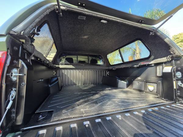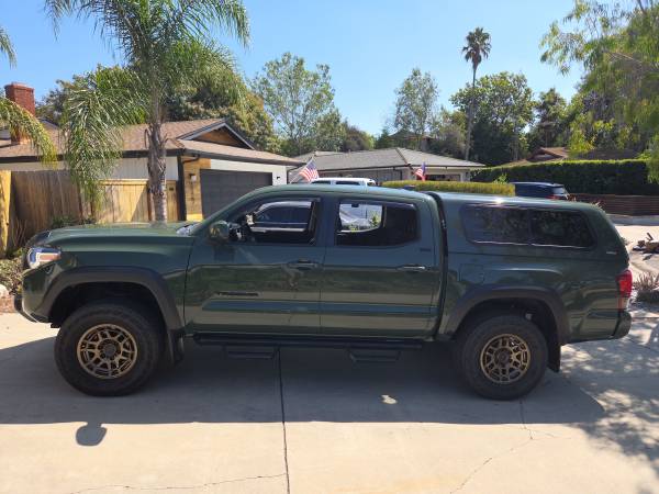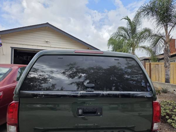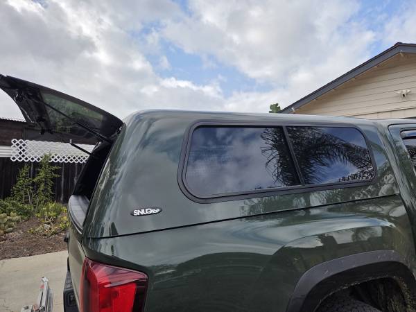 For sale is an Army Green Snugtop Rebel shell for a 2015-2023 Toyota Tacoma with a 5' bed in like-new condition. Comes with sliding side windows with mesh screens, drop-down front window, insulation, integrated USB chargers and LED light, and a brake light. Attaches to the stock bed rails with 6 c-clamps. I have the original paperwork detailing all of the options.