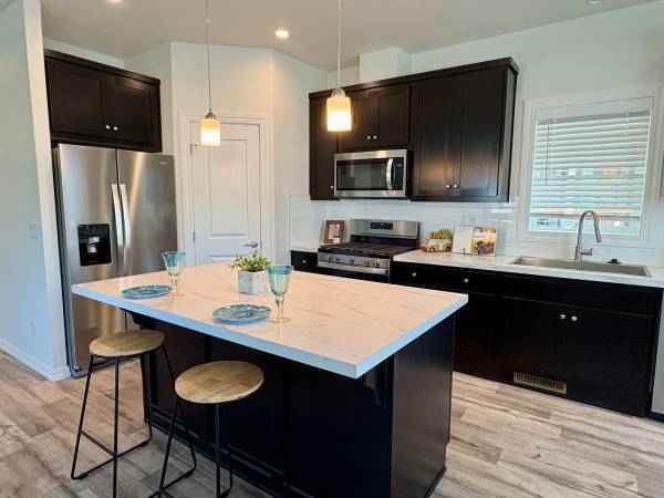 Discover modern comfort in this brand-new home in wonderful adult community in beautiful country setting with walking trails, pool and lake! Spacious, gourmet kitchen and a seamless flow into the great room. Relax in the primary suite, complete with a contemporary ensuite bathroom featuring dual sinks and a large walk-in shower, while a second full bath offers convenience for guests. Enjoy the peace of mind of a new build in a well-maintained gated community with pool and clubhouse, all with an affordable space rent of just $815/month.
