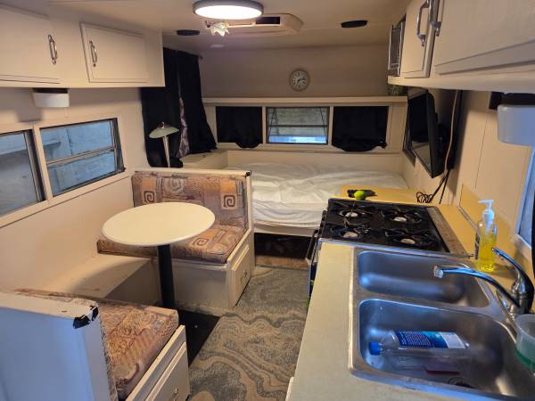 24 foot Trailer for rent. $1000 dollars a month. That encludes a fenced in yard, private parking spot, small shed. Power, water, enternet & and cable TV with HBO & Netfix is encluded. Renting to one person with one car only! Very convient location by freeway and very private. ...$200 cleaning deposit. Please text to show contact info