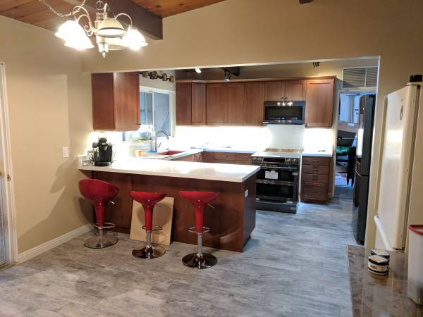 Room available starting Jan 1st. Rent is $1500/month and includes all utilities. The house is walking distance to a park (basketball, volleyball, soccer, dog park) is on a half acre, plenty of parking, ping pong table, bbq, etc. It's a 3 bedroom house, with 1 cat and 2 dogs. Bathroom and kitchen fully remodeled with all new appliances (2019 and 2017). Lots of fridge space (you'll share a full size fridge/freezer with 1 person, but we have more fridges/freezer space on patio/garage), walk in pantry, workout equipment (weights, bike, bench) in garage.