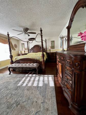 No smoking/vaping/marijuana, no pets, no drugs. Seeking full-time working professional. Must work outside of home. No work-from-home. Will need to discuss hybrid work. Proof of income. Bedroom has California king-size bed, dresser, nightstands, lamps & mirrored closets. En-suite bathroom. No washer/dryer available. No laundry on site.