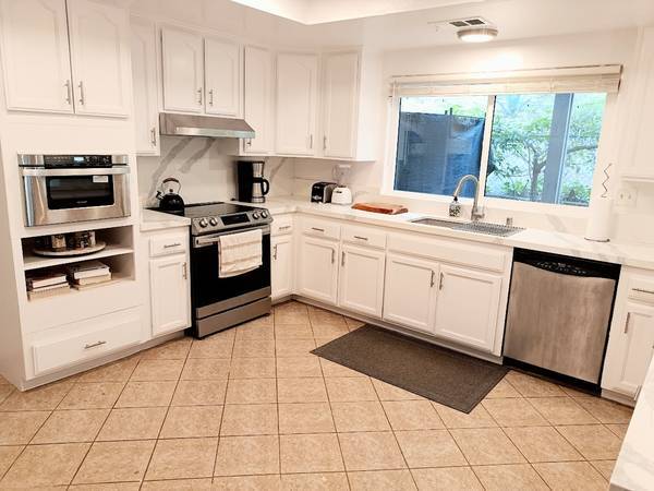 The shared common areas are downstairs kitchen, hallway, living room, entry, and hath bath downstairs, and backyard. You will be sharing the interior living space with 3 other people. The kitchen is fully equipped for your cooking needs. The garage has a washer and dryer. Parking is on the driveway. There are two long-time well-behaved resident dogs on the property, so you must be comfortable with this. No other dogs or cats are permitted.