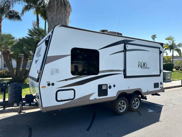 2019 Rockwood Roo travel trailer has 3 queen beds that fold down. Full bathroom and shower. Light weight and easy to tow. Title in hand