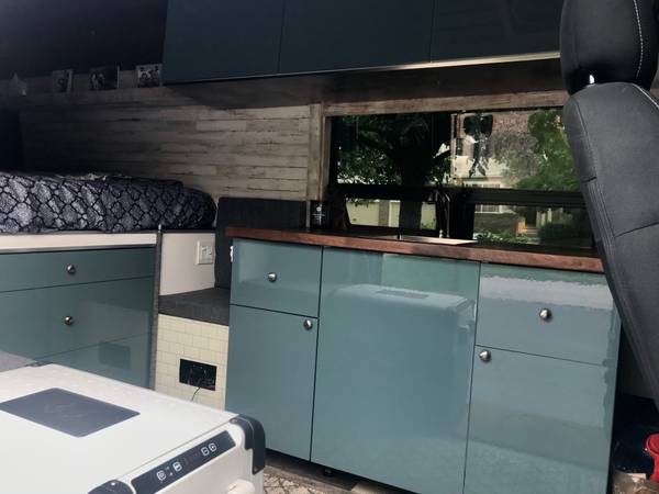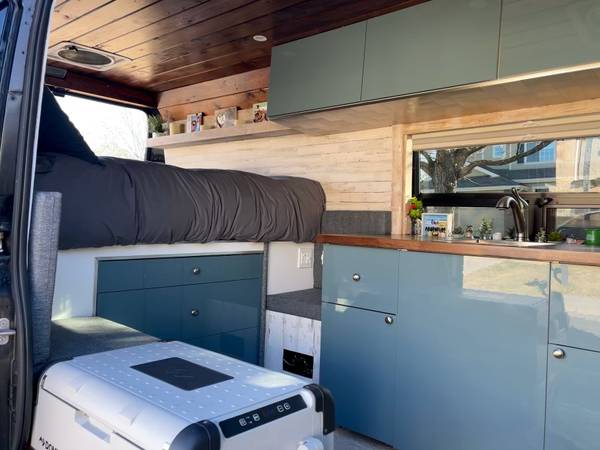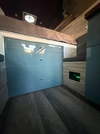 • Floating bedframe providing optimal storage under bed. Van was built for comfort and storability in mind.