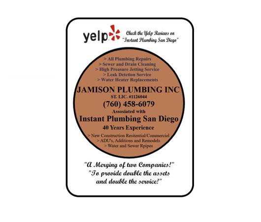 PLUMBING: REPAIRS! DRAINS! REMODELS! ADU's! Res/Comm Plumber-San Diego