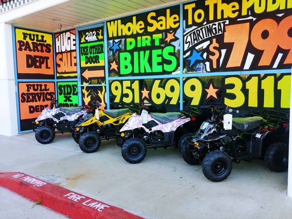 NEW KIDS QUADS,110cc REGULAR $1599.ON SALE, FOR ONLY $799.99 PLUS FEES, (WHILE SUPPLIES LAST). FULLY AUTO, HAND AND FOOT BRAKE, LIGHTS, SPEED CONTROL, DISC BRAKES, WARRANTY, AND MUCH MORE.