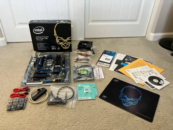 - Intel DZ77-GA70K Box - includes all original accessories such as I/O shield, front panel USB 3.0 bracket, wireless/bluetooth module, documentation and unused Intel Extreme Series Mouse Mat