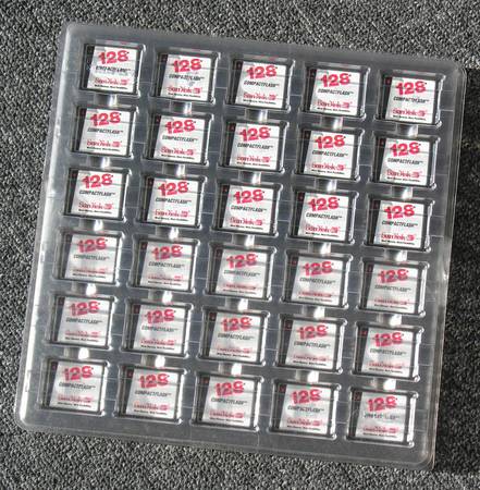 For sale is a number of ScanDisc Flash 128 MB CF Compact Flash SDCFB memory cards. They are brand new, never used, still in their original packaging. As of now I have 75 left. Asking $ 5.00 each OBO...
