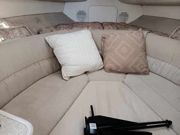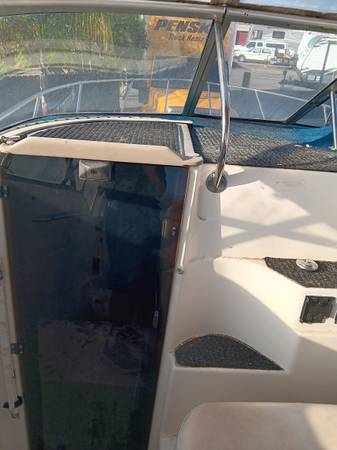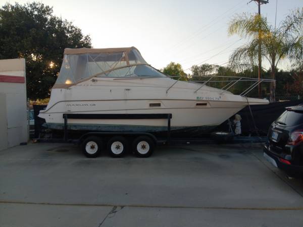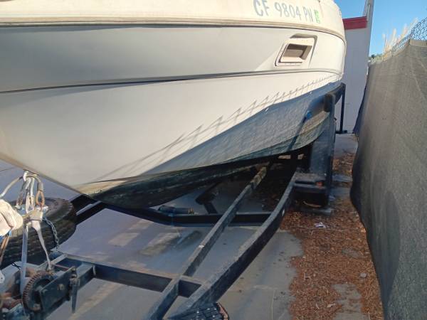 I have been getting inquiries about this offer asking me if it's a typo because the price is way low. I assure you, this yacht is worth at least $15,000. The trailer at least worth $3,000 This is an awesome 25 foot yacht on a great, heavy duty trailer which is in perfect working order, with a triple axle. All tires in perfect condition as is the spare tire. There is also a spot for one jet ski on the front of the trailer. I am having a Mobil cleaner guy come out and wash, wax it soon. The boat has a brand new oil pump and a brand new oil pan, tune up and oil change. This work was done at the Oceanside Harbor boat shop and repair station. The boat was in a slip for the last 7 years. I bought the trailer for $4,500. so I could take the boat out of the slip. We are moving in December and it would be an expensive chore to get the boat to go with us. The engine is very strong! Two new batteries, $225 each. This boat gets up to about 25-28 miles per hour depending on ocean conditions. My wife and I have taken it to Catalina Island four times in total and this boat performed awesome!