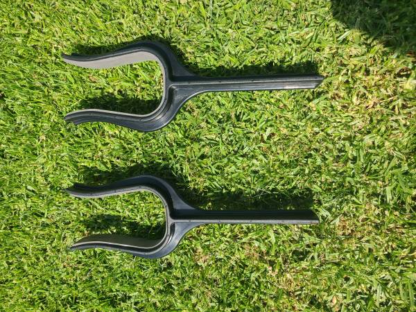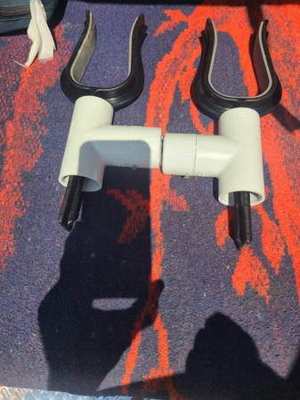 I have an original surf prong surfboard holder from the middle 8 nineties that were popular to either put in the sand and hold your board on edge or necessary PVC parts that attach to the wall and can hold a surfboard mounted against the wall. If anyone has any questions regarding mounting and/or use please feel free to call me. All hardware is included these generally mount against the wall into either drywall or a stud. Cash Only.