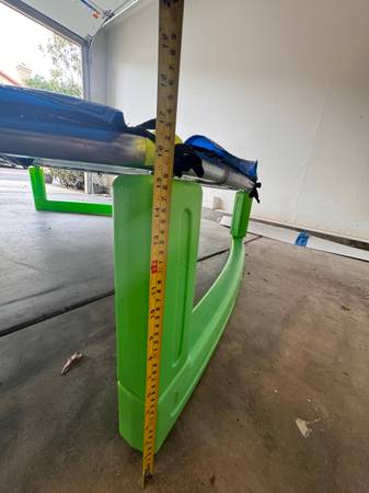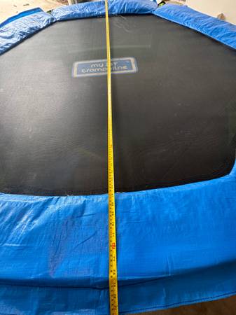 Great for 3-8 yrs old. Very sturdy with wide long bases. wide jumping space or gymnastics practice. Been in garage 75x 75” 16” high