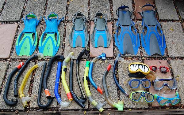 I have a number of nice pre-owned swimming diving and snorkeling face masks, snorkels, and swim fins available. A mask with a snorkel is just $12 for both items. Extra Snorkels are just $3 each. I have one pair of swim fins available for just $10, a Child size Sm/Md 1-3. Other fins in the photos have been sold. Please note that I have a $10 minimum purchase per meet-up. Payment in cash only, and the asking price is firm. Please call David (no texts, please, this is a landline) for more information or to set up a time to see this item in Escondido. My items are for local pick-up only, no shipping, and please no offers to trade. Thanks!