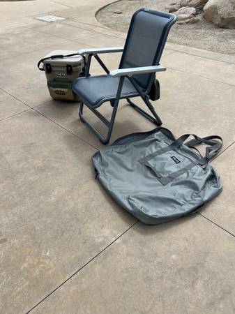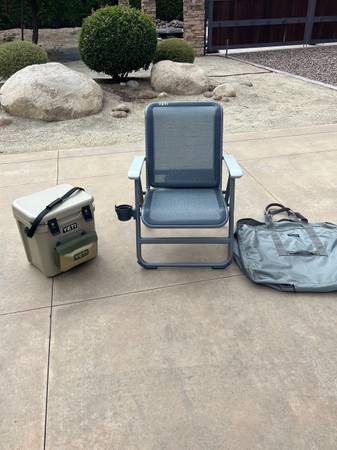 Yeti Hondo Foldable Chair with Cup Holder, Accessory Gear Bag and HD Carry Bag. Yeti Roadie 24 Cooler with Sidekick Dry Bag, Bottle Opener and Clear Basket. Items can be seperated for purchase $150...