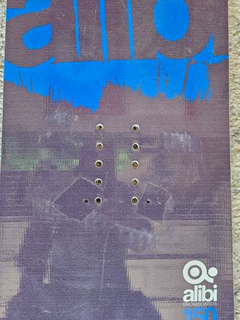 Selling a Alibi Snowboard for $100 or best offer. The snow board wasn't used and a size 150 cm. The snowboard does have extra holes for some reason by the previous owner. Please look at the pictures. Make me a decent offer and you can take it home. You can text or call me show contact info