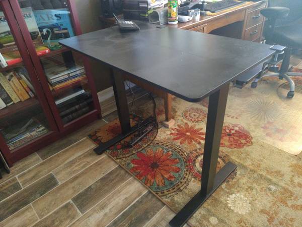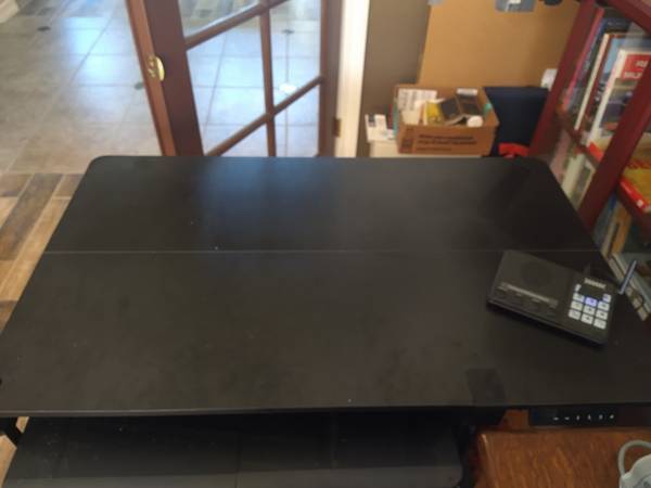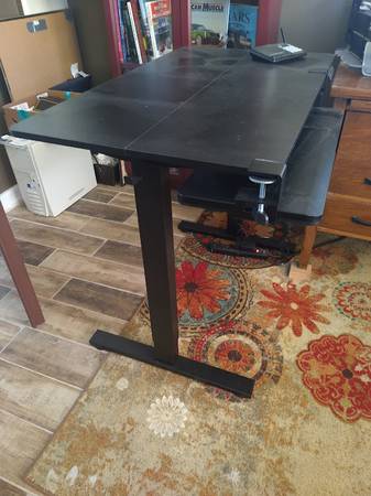 Ergonomic Home Office Desk, work sitting or standing. Electric Height Adjustable. Height range of 28.9in - 46.5in. Desk is 40” x 24”. Bough for home office but only used 2 weeks due to loosing job....