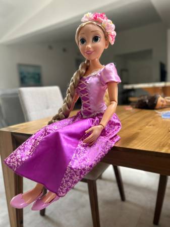 Disney Princess Rapunzel Playdate 32", poseable doll with 2 crowns, flower headband dress and shoes
