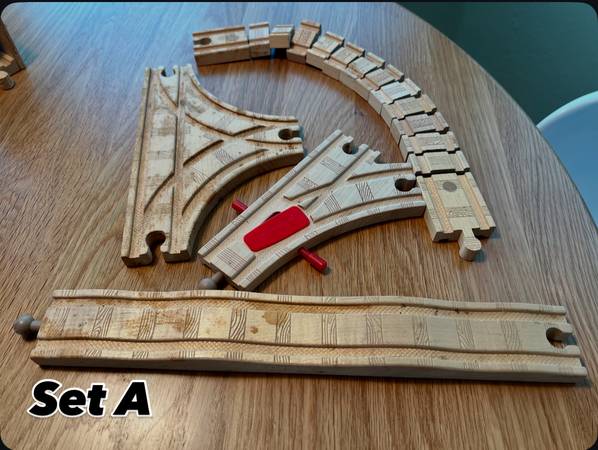 Thomas the Train wooden bridges, tunnels, tracks. Each set sold separately, price varies, see below. Cash only Set A (tracks) $13.00 Set B (tree/tunnel house) $7.00 Set C (bridge) 2 sets each $10.00...