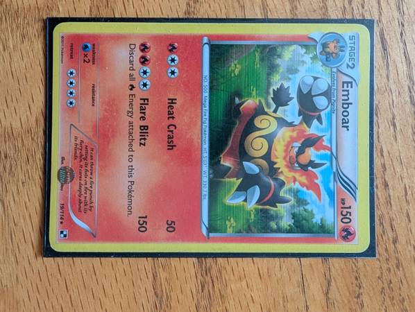 Stage 2 Emboar card with Heat Crash and Flare Blitz attacks. I am cleaning home. Please see my other listings. If you buy more than one item at one time, get all for 10% off.