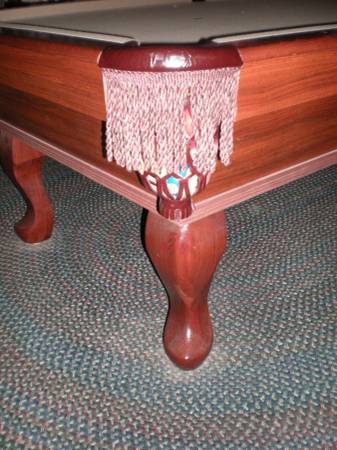 8' Connelly Gibraltor Slate Pool Table. Mahogany, Queen Anne Legs Fringe Pockets, Cloth color is "khaki". Vinyl pool table cover included. Upgraded accessory set. Moving - must sell. $2000 or best...