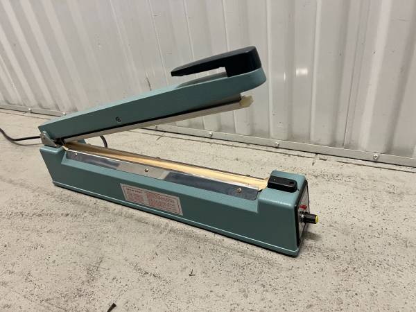 20-inch impulse heat sealer in excellent, like-new condition. Designed for sealing polyethylene and polypropylene bags, as well as other thermoplastic materials. Adjustable timer for precise sealing control based on material thickness. Produces clean, secure seals up to 20 inches wide. Ideal for workshop, shipping, or industrial packaging applications.