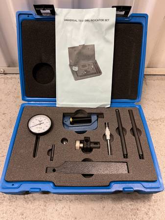 PEC Tools Universal Test Dial Indicator Set (Model P135-K), Made in USA. Excellent condition, complete with all components and original case and manual. Includes dial indicator, holding arms, clamps, and accessories for precision setup and measurement.