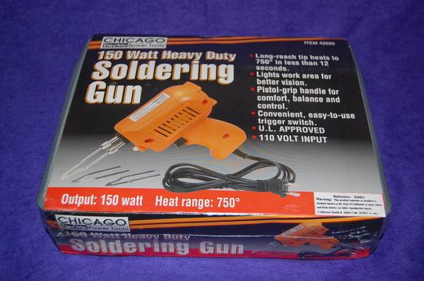 Here is a Chicago Electric Power Tools 150 Watt Heavy Duty Soldering Gun Iron in NEW and SEALED condition! Payment in cash only, and the asking price is firm. Please reply to this listing or call (no texts, please) David for more information or to set up a time to see these items tools in Escondido. My items are for local pick-up only, no shipping, and please no offers to trade. Thanks! 2024-01-26-GRFC4A+B