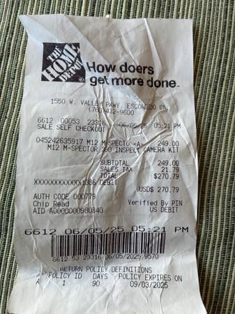 I have a Milwaukee M12 inspection camera kit for sale. Never used. Bought 6-5-25 for $270 (tax included) at the Home Depot. Have the receipt $230 obo