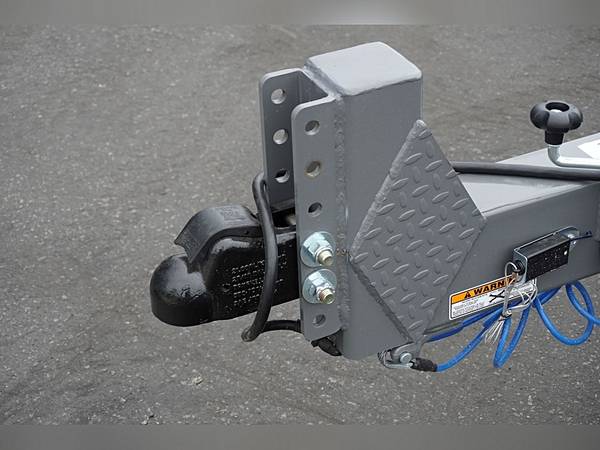 This trailer is built to last featuring a durable 5" x 3" x 5/16" angle iron frame and a 1/8" diamond plate floor ready for tough jobs. It comes equipped with a 7K electric brake axle and 6-leaf slipper springs for a smooth and secure ride. The 2-5/16" 21K Demco EZ-Latch coupler ensures easy and secure hook-ups.