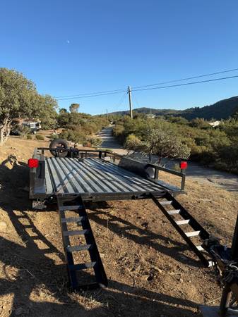 B DECK METAL DECKING, WINCH AND SURGE BRAKE INCLUDED, ALSO HAS LED LIGHTS—————HAS RAMPS ALSO THAT ARE ATTACHED TO TRAILER