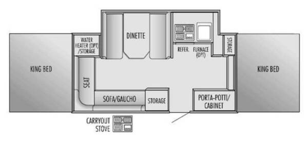 Hard to find 2004 Jayco Eagle 14SO with tandem axles, large slide and torsion axle suspension. **Sleeps 7 with king beds on each end, large L shaped sofa and dinette with indoor/outdoor table. The...