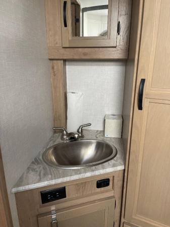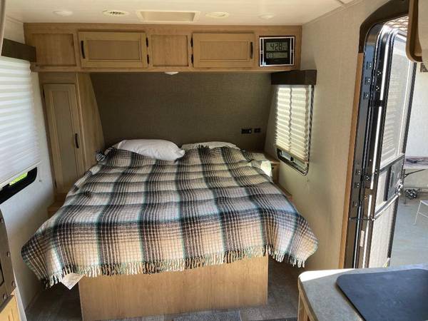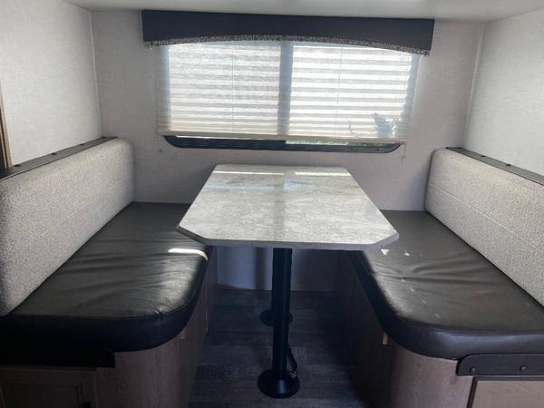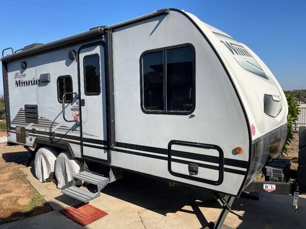 Trailer also came equipped with Explorer Package, included in the 2020 and 2021 Micro Minnie's, makes it easier for boondocking, going off-road, and getting further into nature while still having most of your usual comforts. Roof-mount solar prep, Larger, off-road tires – 15”Propane heating system, Heavy duty axles & suspension – Torsion axles,Wi-Fi prep, Battery disconnect, Awning with LED lighting, Wireless cell phone charger
