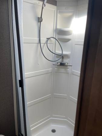 Trailer came equipped with Comfort Tech Package which helps to keep you comfortable in various weather conditions. It includes: Laminated block foam sidewalls, Radiant foil wrapping – Roof and front caps-Roof-mount A/C systems-Heated Tanks and an Enclosed underbelly.