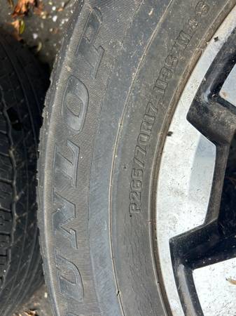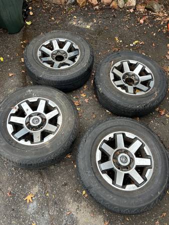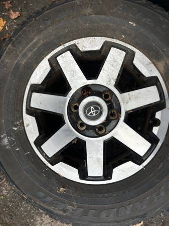 Stock rims from a 2020 Toyota 4-Runner with tires- 3/32 thread on tires. Bought new for my truck . Only 2 center caps .