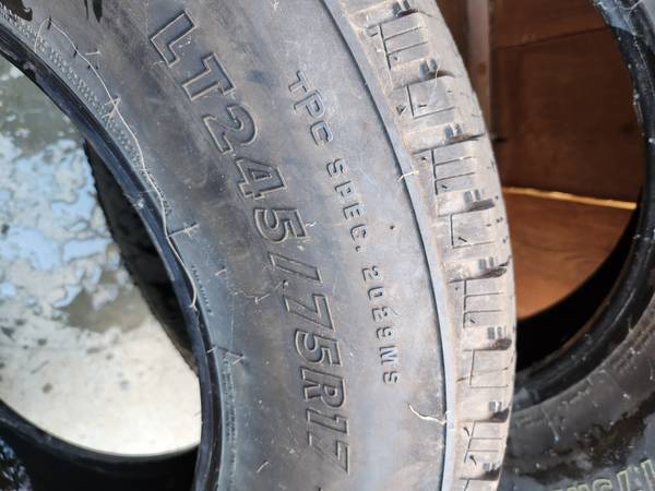 I have 2 used tires for sale LT245-75-17 with good tread Selling BOTH for $160.00 Tires only $200.00 Mounted and balanced ***FIRM ON PRICE*** Available evenings and weekends. Thank you. Se habla...