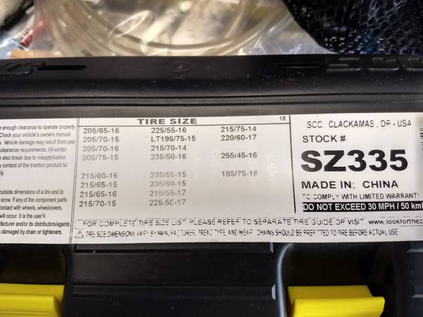Just in time for the winter snows! Be prepared when they get to the local mountains. New, never been out of the box tire cable chain set. For passenger cars and some light trucks. Can by found on...