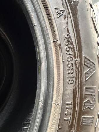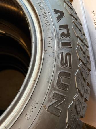 265/65/18 Arisun All terrain tires im located in vista ca Asking $450 OBO