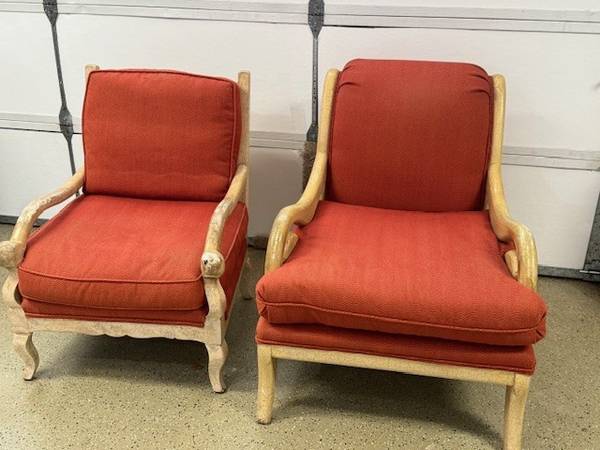 2 Accent chairs - Very Sturdy. Very comfortable. Upholstery in excellent condition. Side arms could use cleaning and possible reconditioning. Very good chairs. FREE! Must take both! If still posted, still available. In Encinitas. First come, first serve. Please call or text for address. 6 one 9 300 two 993.